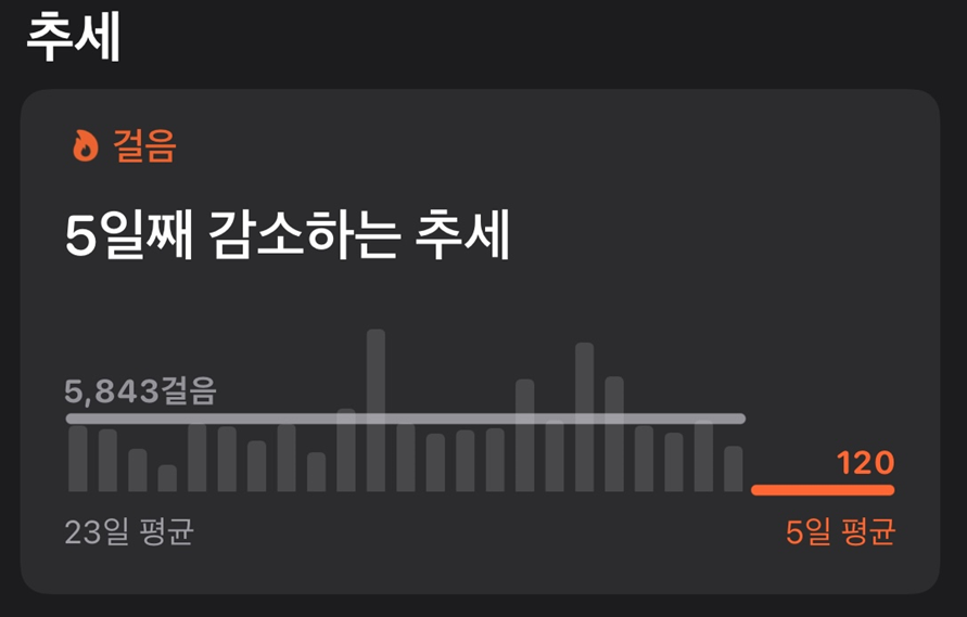 +) 추가로 올리는 나의 건강 앱에서 보이는 걸음 상태.. 격리란 이런 것이다 ㅎㅎ